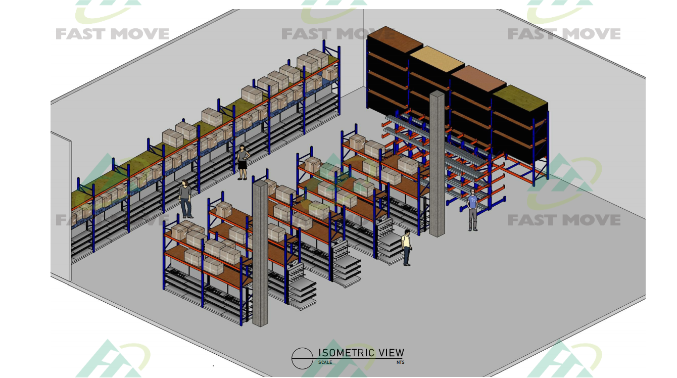 It is non-standard type of the selective pallet racking since some of them inserting a typical gondola in the first level. Below is the 3D design before mass production.