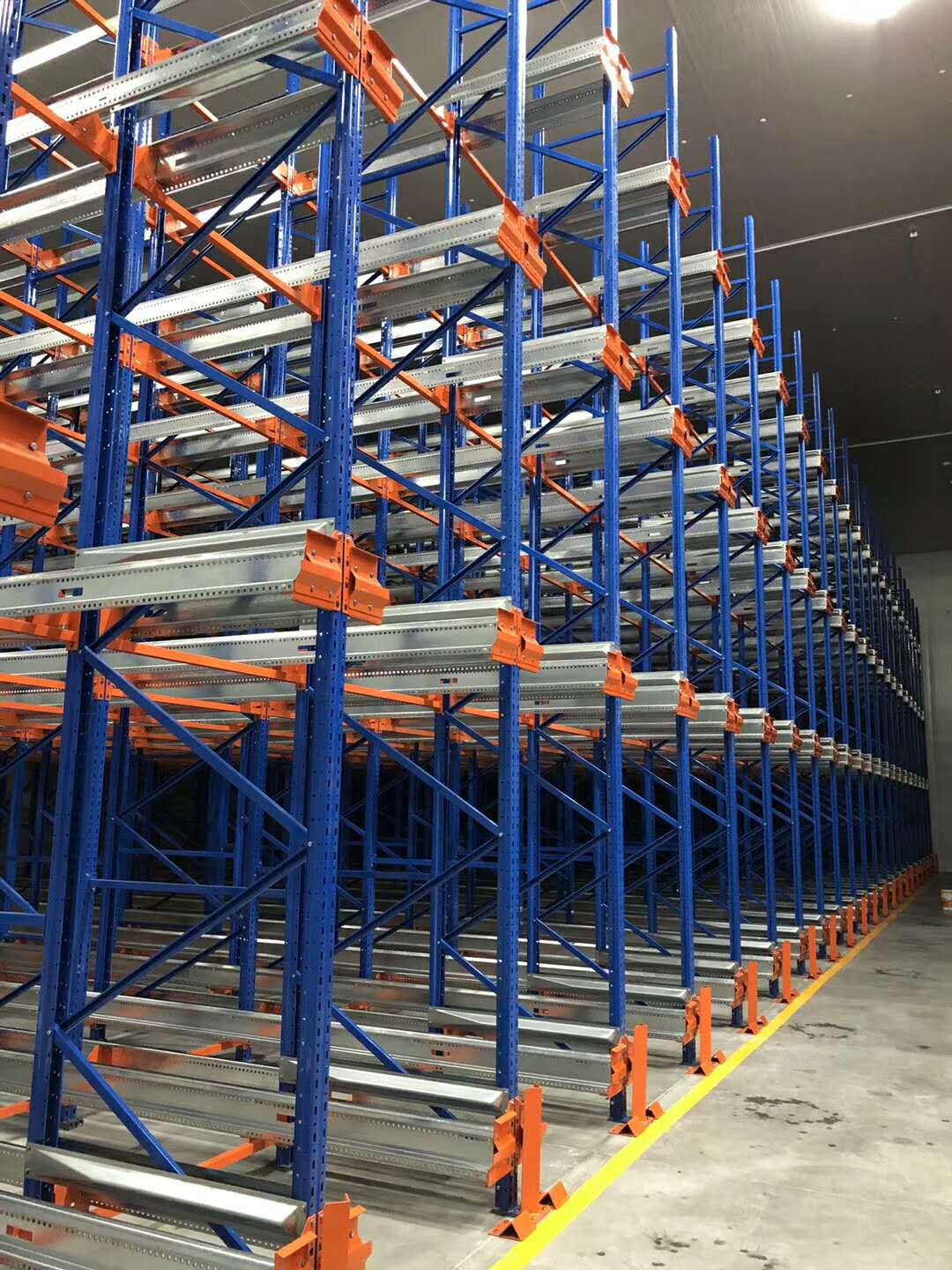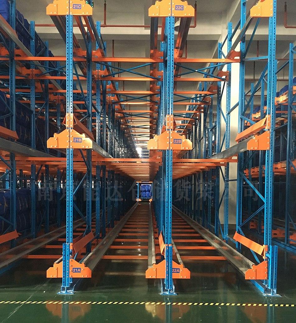 This semi-automated solution consisting of a combination of components of conventional pallet racking and drive-in system, operated by a shuttle truck that moves the loading units within the channels.
